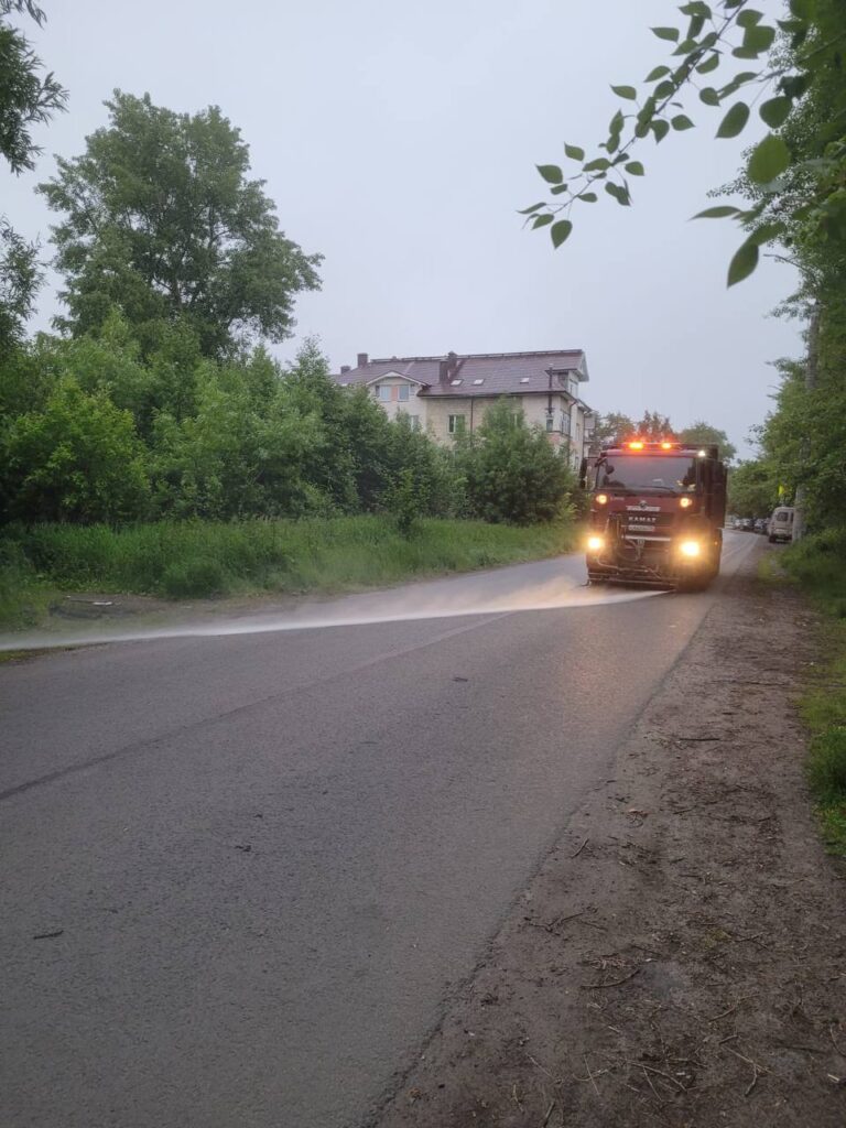 АО «Мезенское дорожное управление» проводит работы по содержанию улично-дорожной сети Архангельска. На городских дорогах работают специализированные машины: проводится механическая очистка и мойка проезжей части, обрабатываются тротуары, парковочные и автобусные карманы, а также прилотковая зона. Ведётся покос травы в рамках сезонного благоустройства.