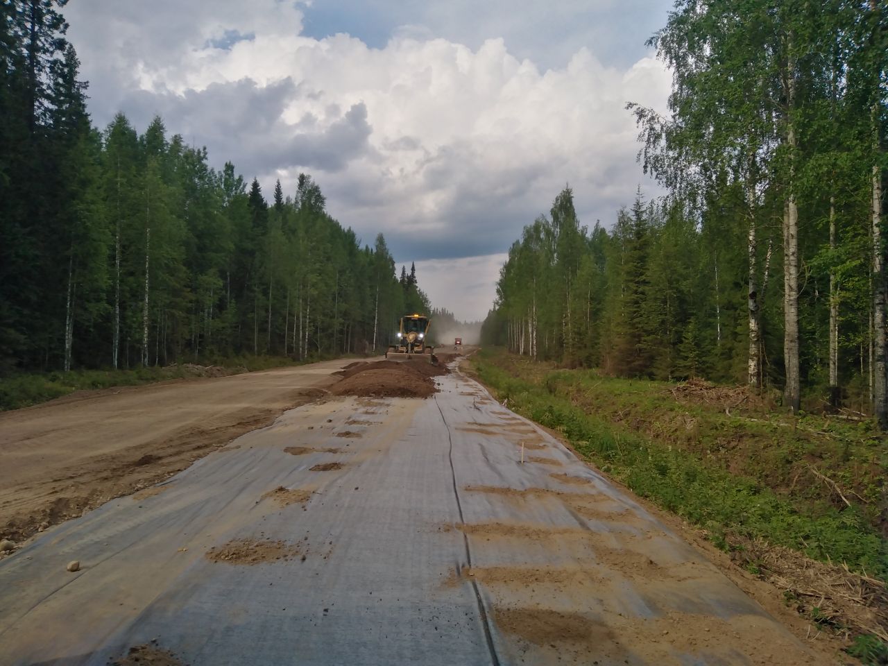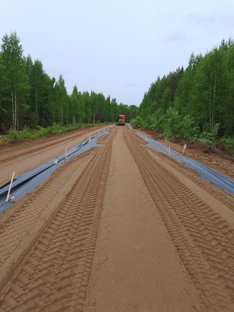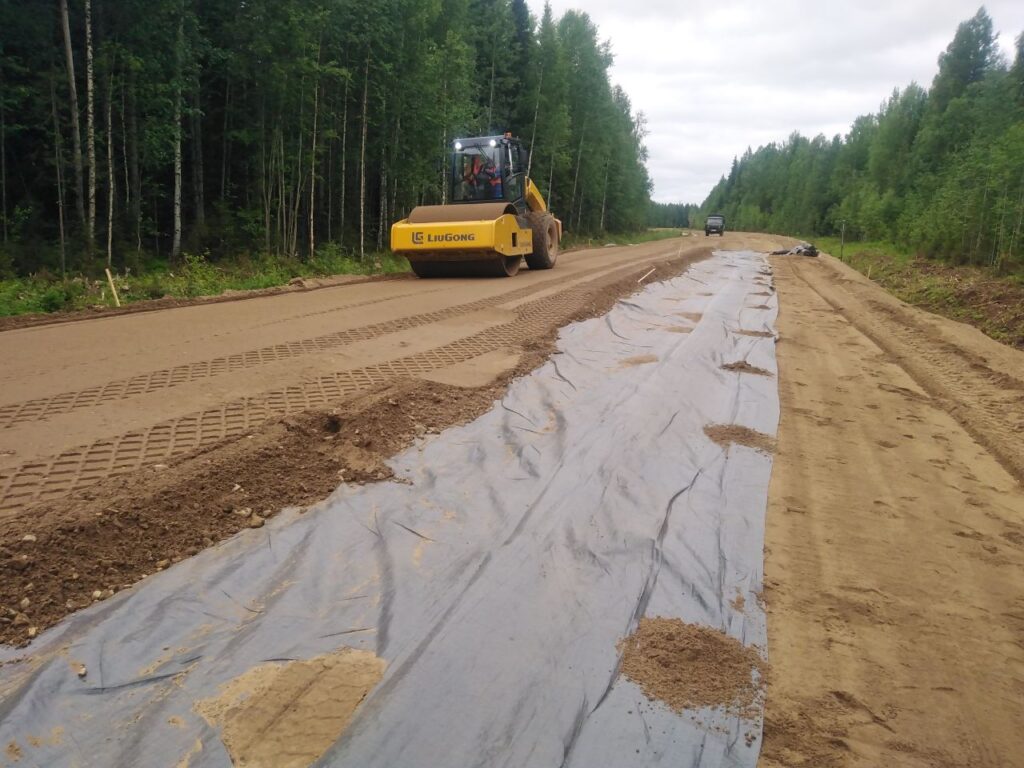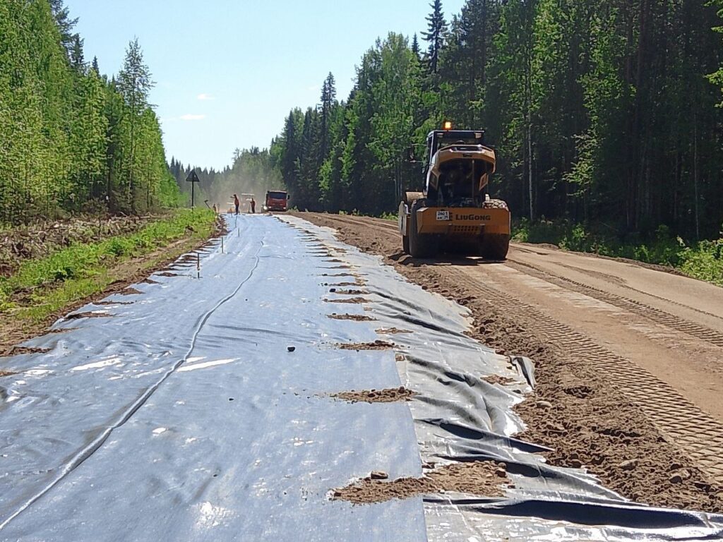 Произведены работы по восстановлению дорожной одежды проезжей части и обочин из щебеночно-песчано-гравийной смеси, кроме того, в рамках ремонта глинистые и пылеватые грунты основания, склонные к пучению, были заменены на дренирующий грунт. Так же были выполнены работы по восстановлению примыканий.