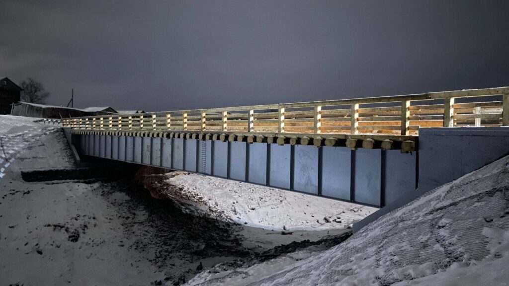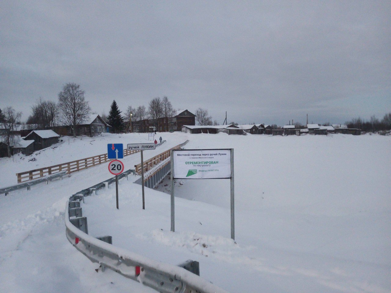 В пос. Каменка Мезенского округа АО «Мезенское дорожное управление» завершен капитальный ремонт моста через ручей Лукин. Строительство мостового сооружения протяженностью порядка 40 метров осуществлялось в рамках реализации нацпроекта «Инфраструктура для жизни».